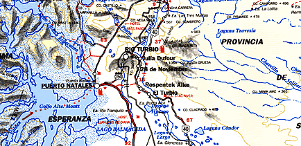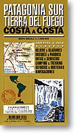 Patagonia Sur and Tierra Del Fuego (From The Argentine Coast to the Chilean Coast), Road and Topographic Travel Tourist Map, Argentina.